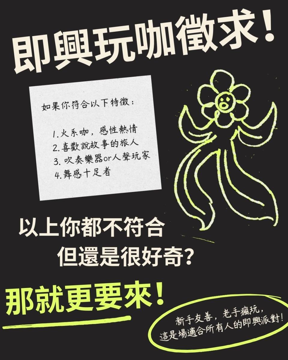 ☑ 歡迎攜帶樂器加入 Jam,無需音樂背景、不限領域