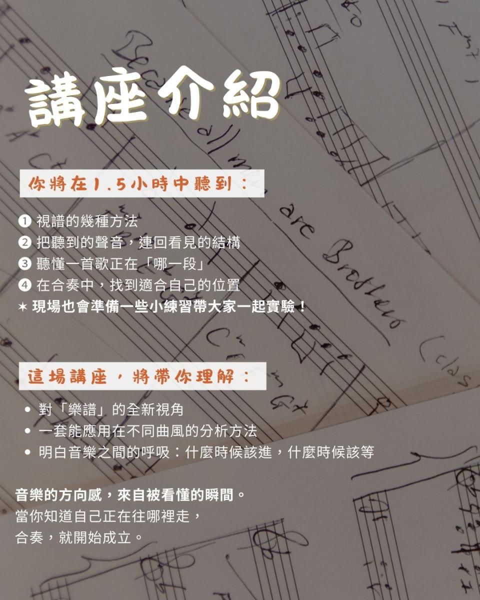 現場還會準備一些樂譜片段與小練習,帶大家一起做實驗!