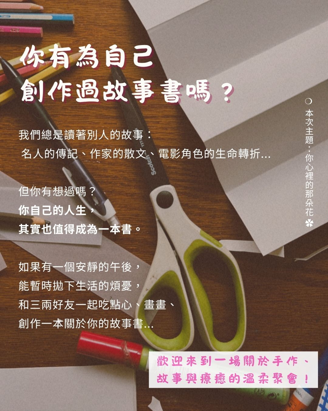 * 以上費用已含手作材料費、茶點、現場媒材自由使用、小書完成作品一冊