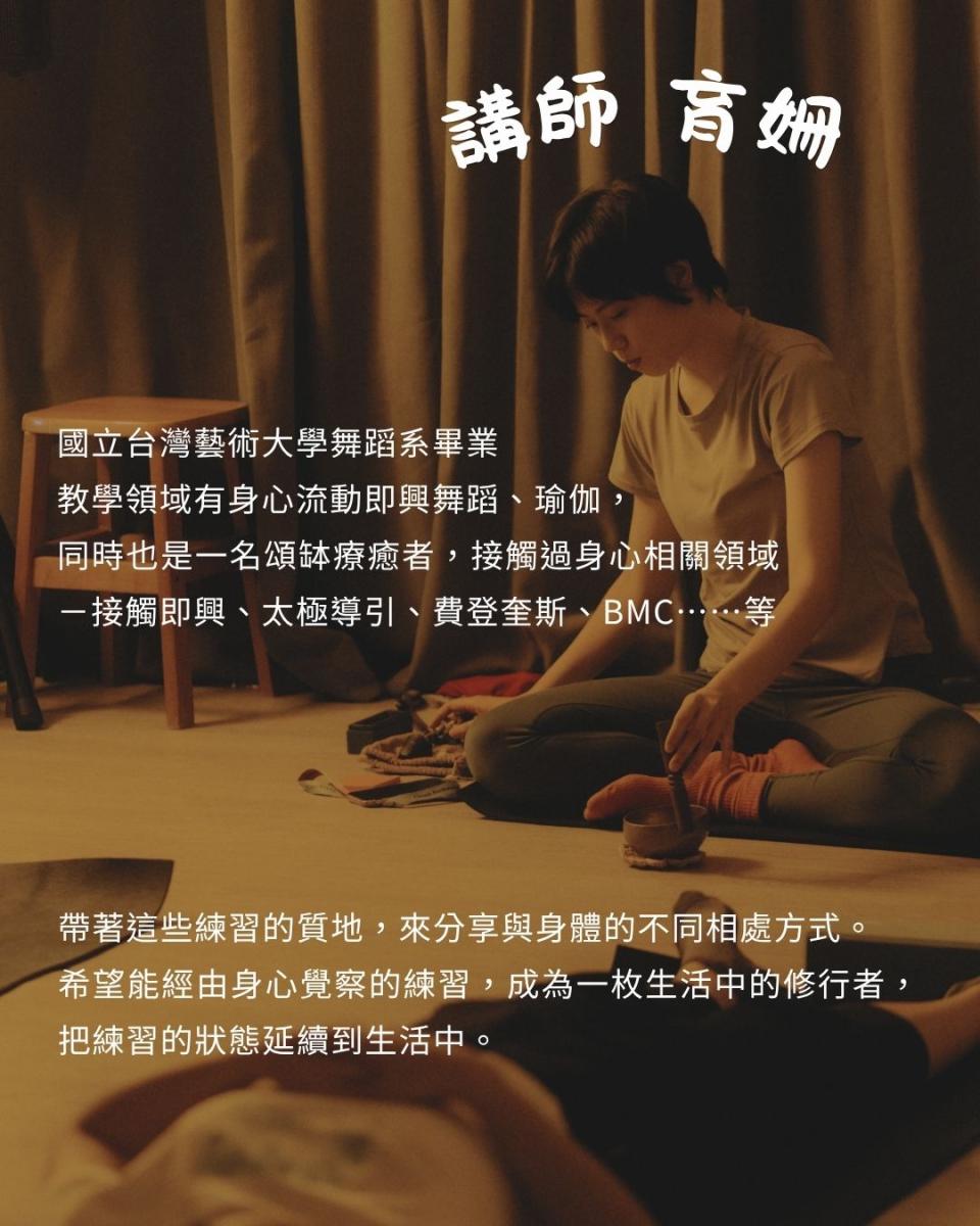 身體如何回應不同節奏、速度、重量感 — 輕盈、緩慢、快速、重力牽引 — 探索動作的質地不同