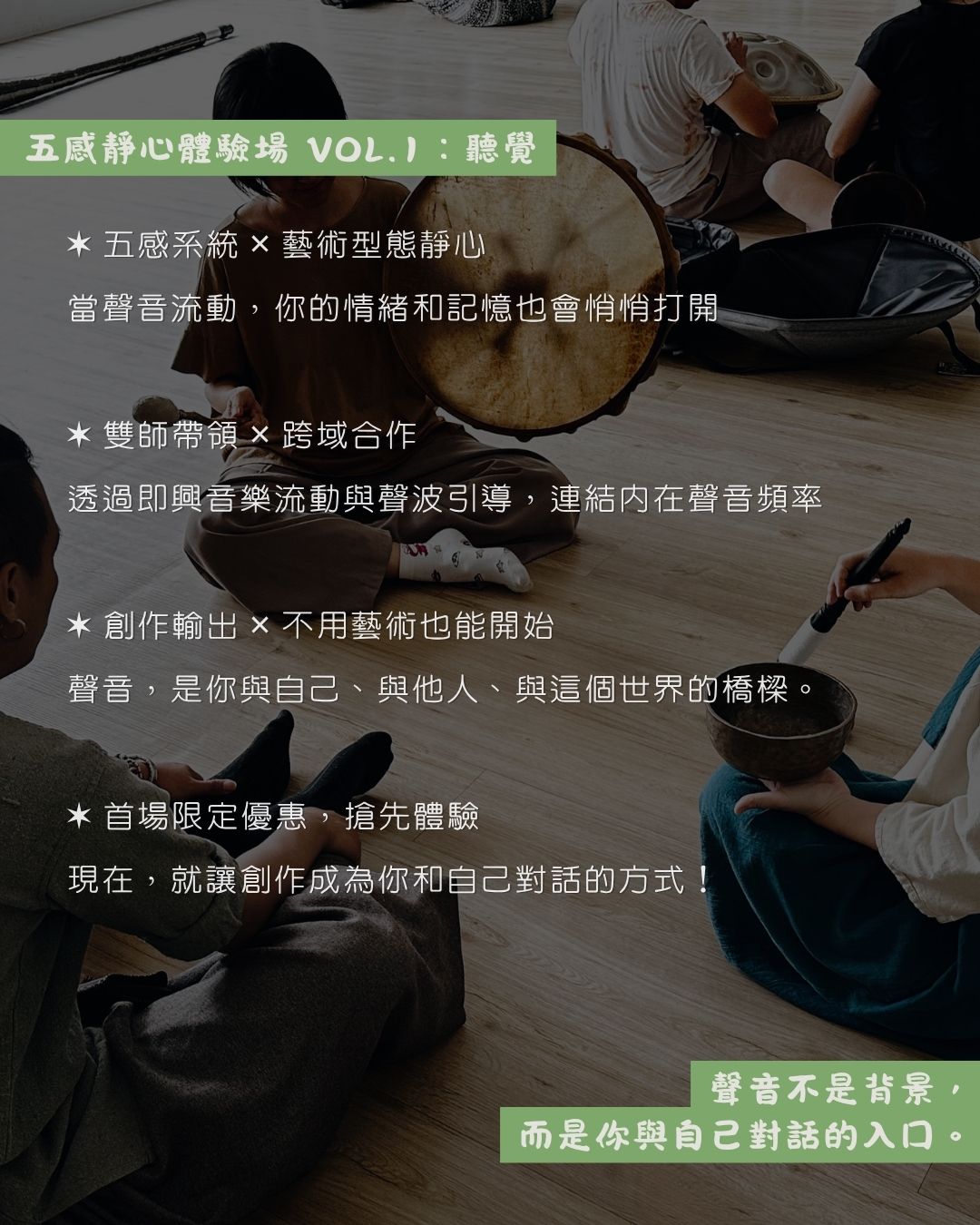 是一系列由五維聚所與地球媽媽共同設計的感官探索活動,邀請你用眼、耳、鼻、舌、心重新感受世界,並透過創作,與自己展開一次真正的對話